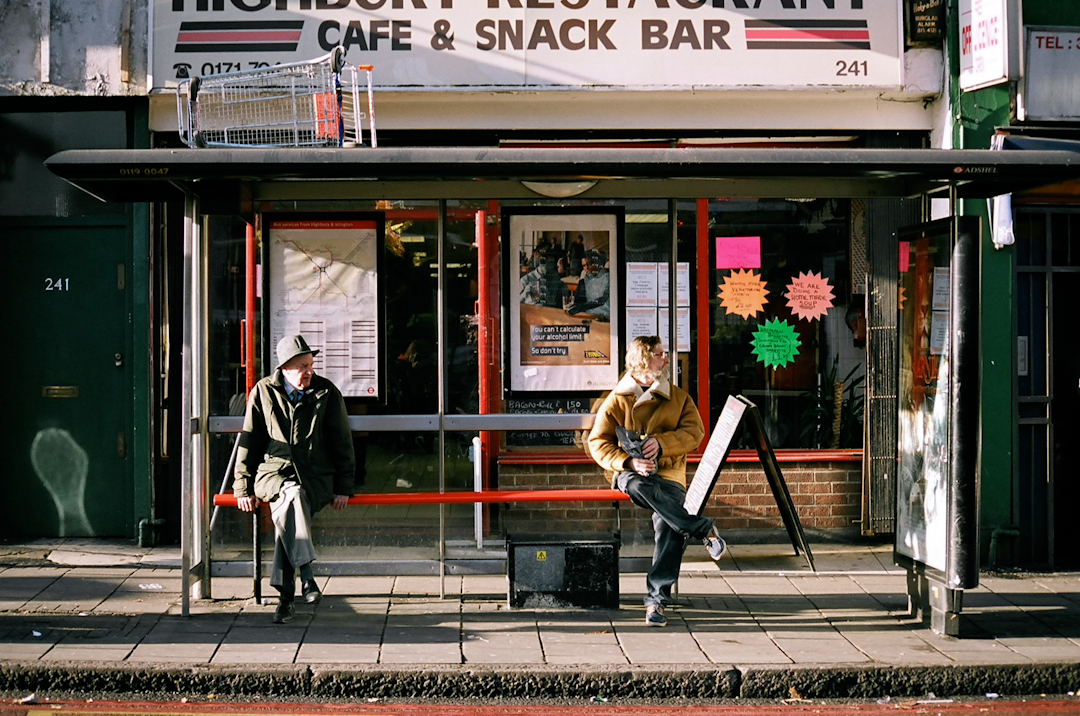 Whilst google's streetcar found little moments of humanity by accident whilst capturing the city's streets. From the very beginning with this project, the intention was to capture the little moments which happen by accident, when the formation of a collection of individuals is completely left to chance. All within the confines or vicinity of the natural linear frame of the bus stop, and repeated every few hundred yards, all throughout the capital.